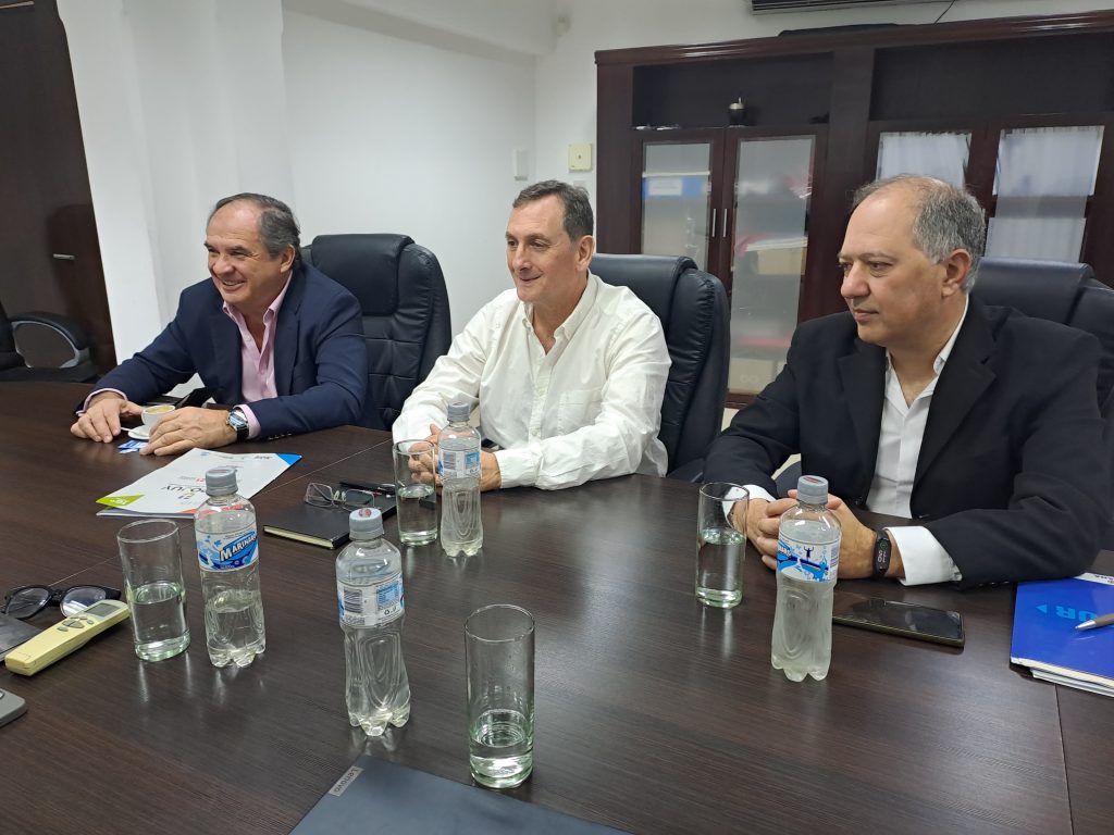 El ministro de Economía y Servicios Públicos, Roberto Dib Ashur, junto a la secretaria de Financiamiento y Planificación Financiera, Liliana Corona, recibieron este martes al representante de Relaciones Internacionales del Gobierno y presidente de la Fundación Prosalta, Julio Argentino San Millán; al vicepresidente de ese organismo, Javier Cerúsico y el gerente Sebastián Ashur Mas, a fin de suscribir a un convenio mediante el cual se promocionarán exportaciones e inversiones en la Provincia.